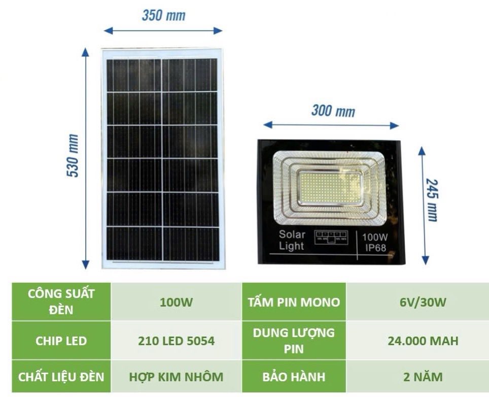 Công suất chiếu sáng: 100W – sử dụng 104 LED 5054 siêu sáng, ánh sáng mạnh và đều, phù hợp chiếu sáng sân vườn, bãi xe, nhà xưởng, khuôn viên, biển quảng cáo,…